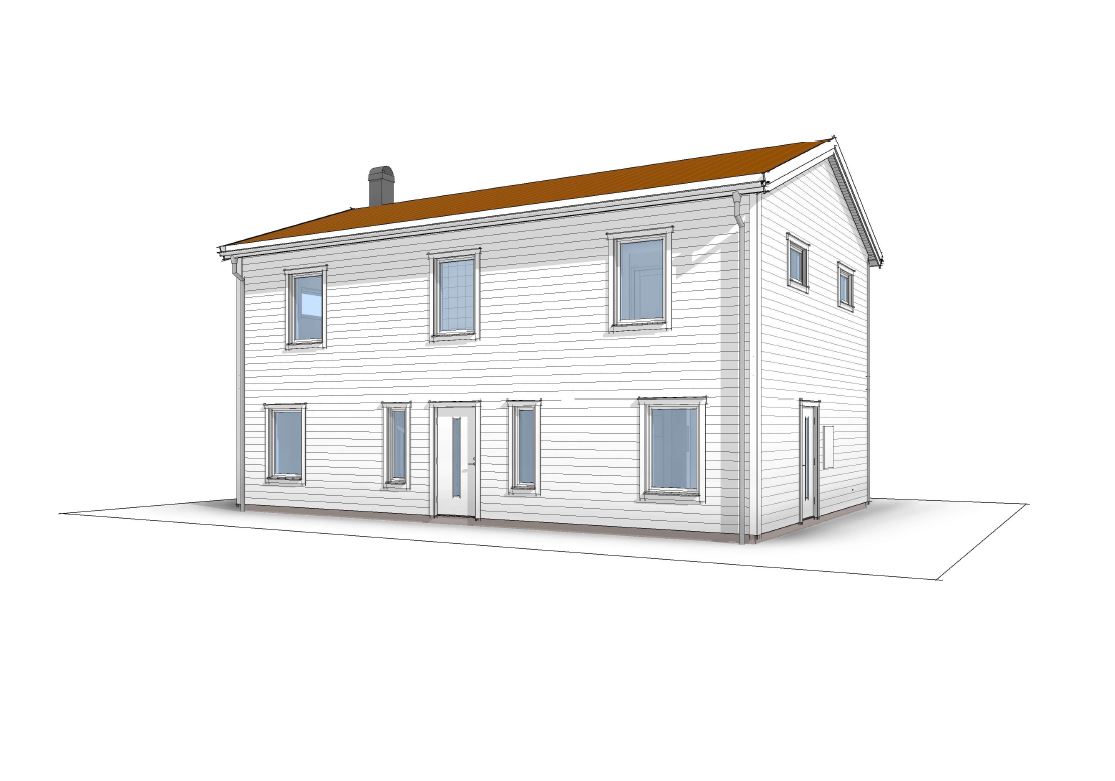 Välkommen till ett hus med smarta lösningar och en rymlig och öppen planlösning mellan kök och vardagsrum. Vardagsrummet går att dela av vid behov av extra sovrum eller kontor. Köket har en köksö som är en populär och betydelsefull samlingpunkt. Är det fint väder ute kan maten tas smidigt ut från köket direkt till trädgården. I entrén finns ett praktiskt kapprum för att kunna stuva undan ytterkläder. Lägg även märke till det praktiska förrådet under trappan. Överplan är rymlig och upp för trappan kommer man direkt till ett ljust öppet allrum. Runt allrummet finns tre-fyra sovrum och ett badrum. Här finns plats för en stor familj!