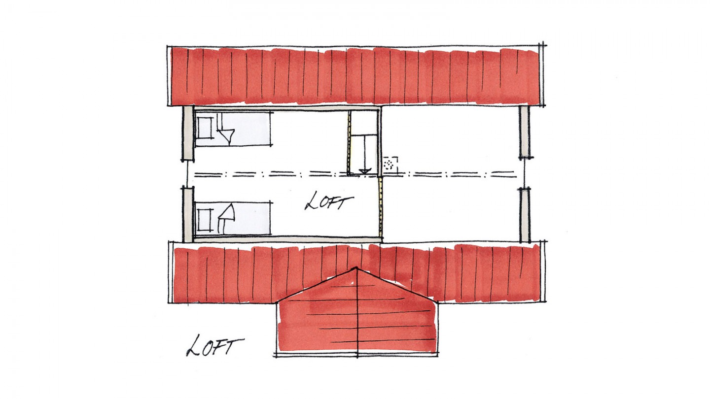 Glasveranda för matplatsen. Storstuga med öppet upp och med loft för extra sovplatser.