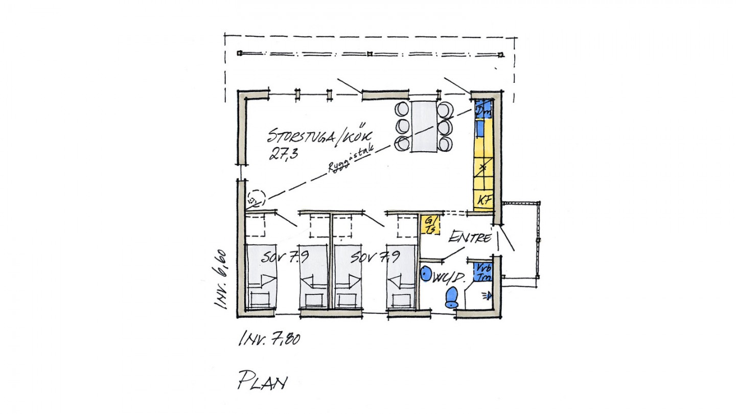 Samma planlösning som Fritidshus 51 modern, men för en traditionell miljö.