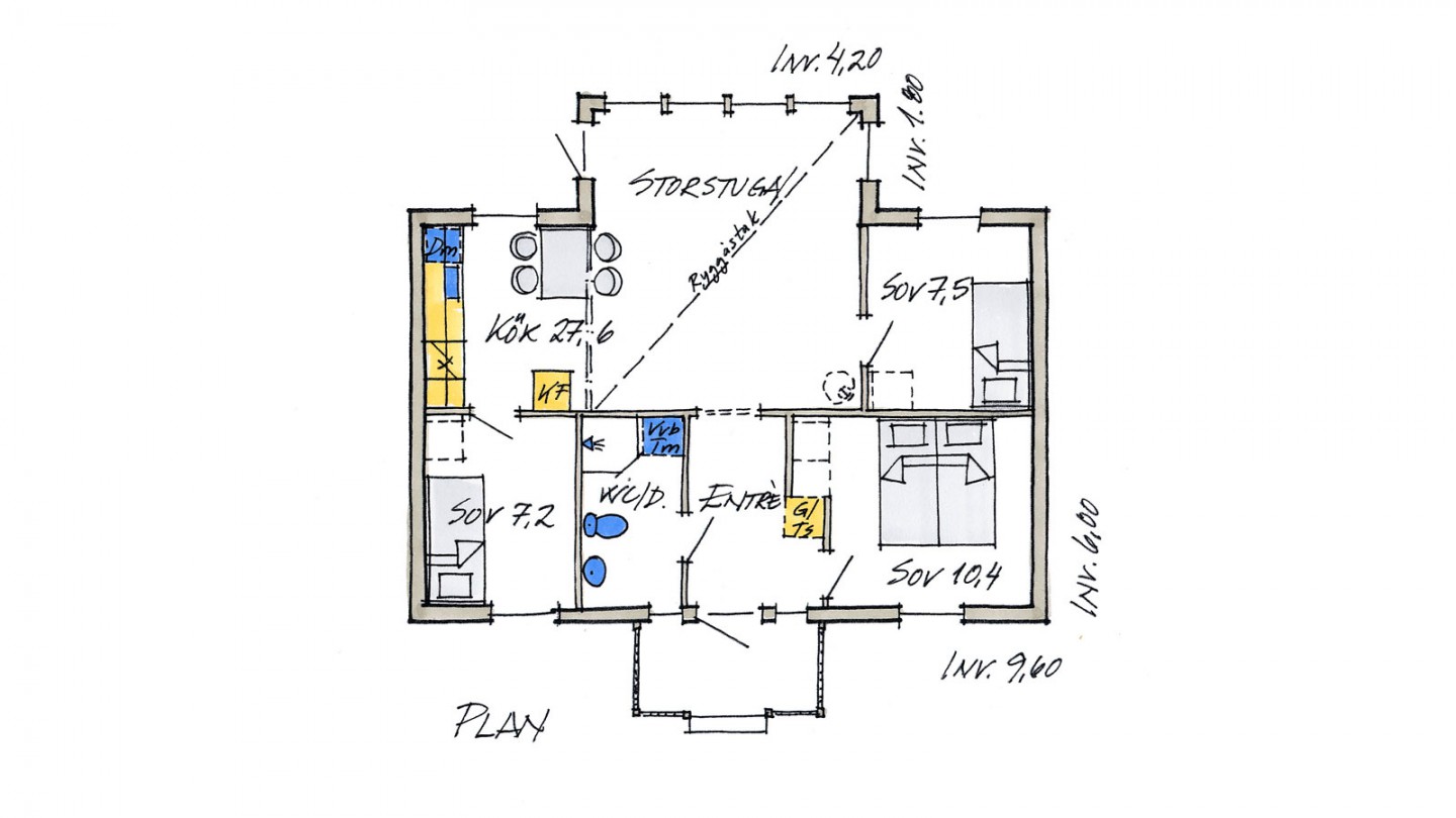 Ett klassiskt hus där förstukvisten och storstugan med ryggåstak och glasveranda ger karaktären.