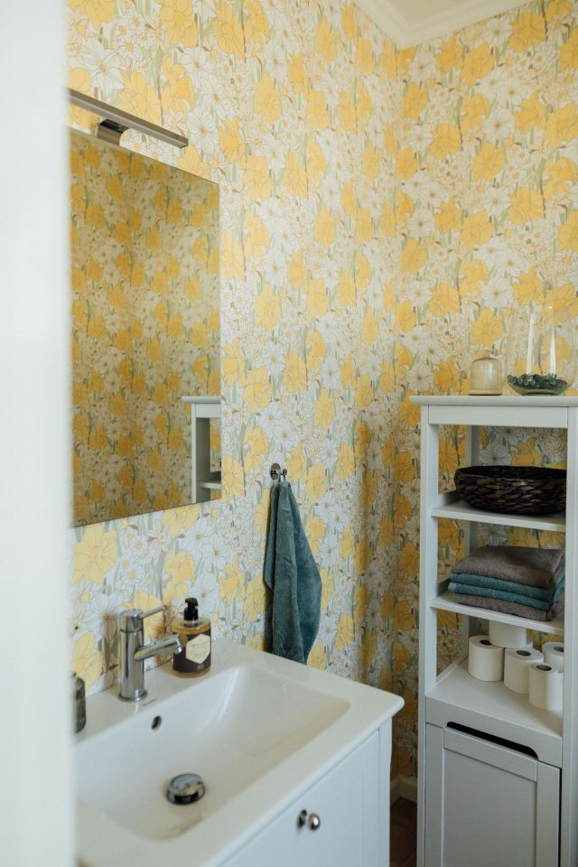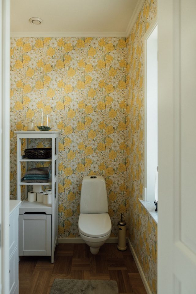 En gästtoalett med mönstrad tapet kan bli en riktig färgklick i ett annars neutralt hem.